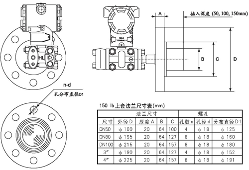 | 法蘭尺寸 | 插入長度 | 高壓側膜片材料 | |||||||||||